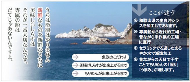 カテゴリ選択 魚政のおすすめうまいもん 釜揚げしらす 天日干しちりめん いりこ(かえり) 乾燥・生わかめ わけありちりめん 煮干 創作ちりめん